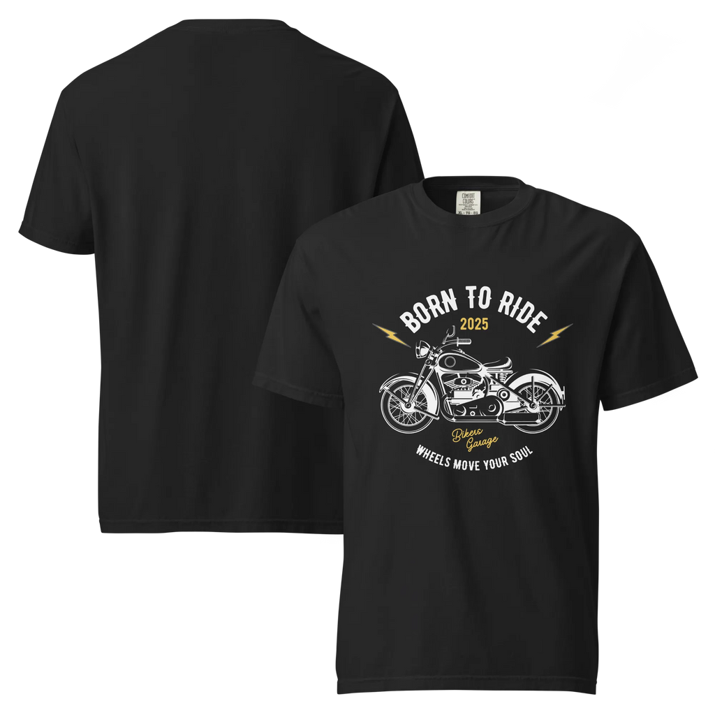 For those who feel alive on two wheels, the BORN TO RIDE t-shirt captures the spirit of motion, freedom, and grit. Featuring bold typographic detail and a striking motorcycle graphic, it’s built for riders who don’t just move — they live on the ride. Crafted from premium garment-dyed cotton, this tee delivers unmatched comfort with a structured silhouette that keeps pace with your lifestyle.