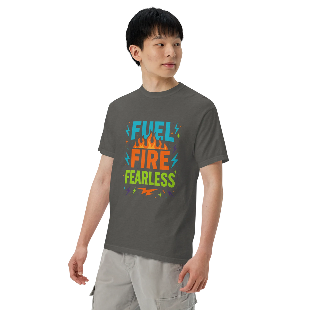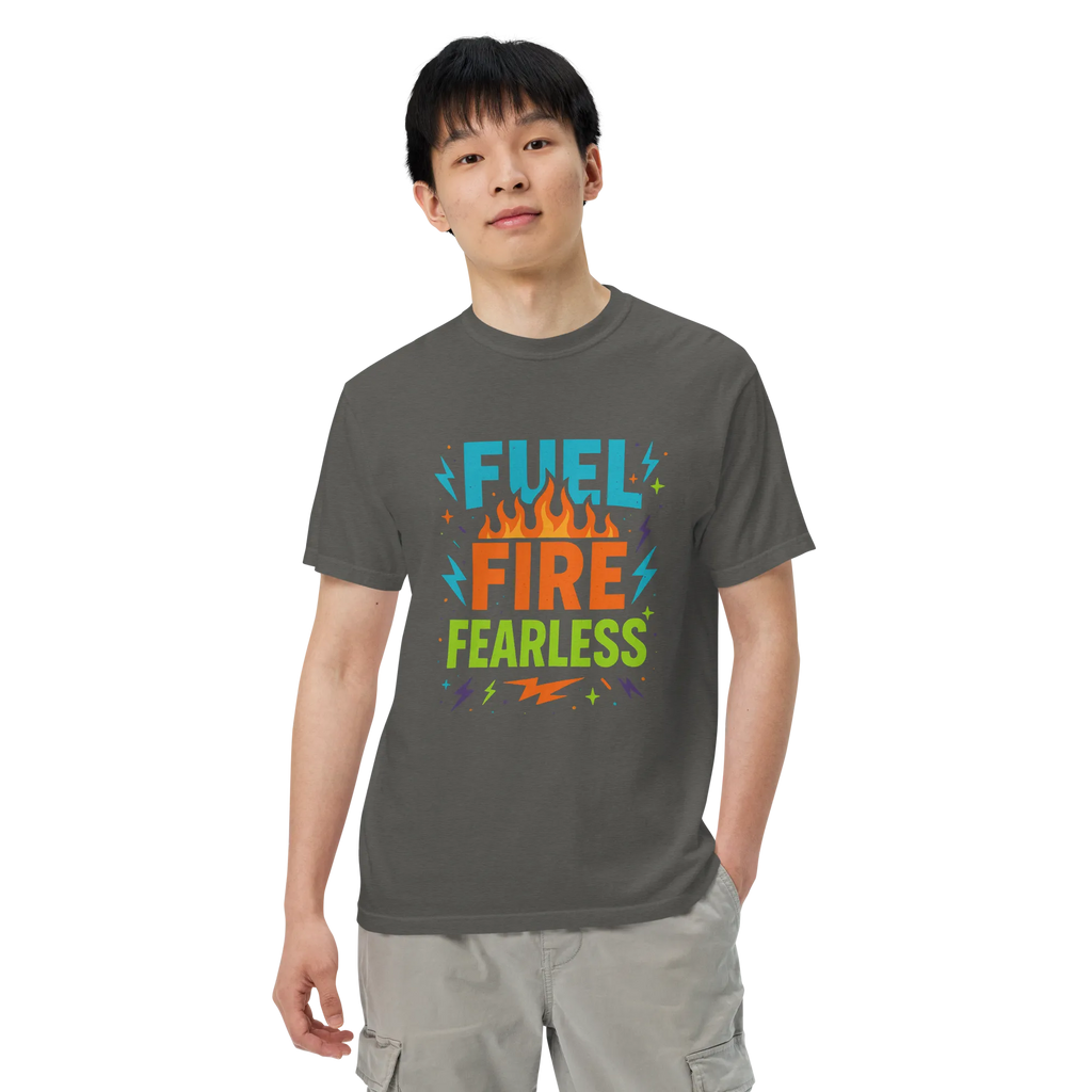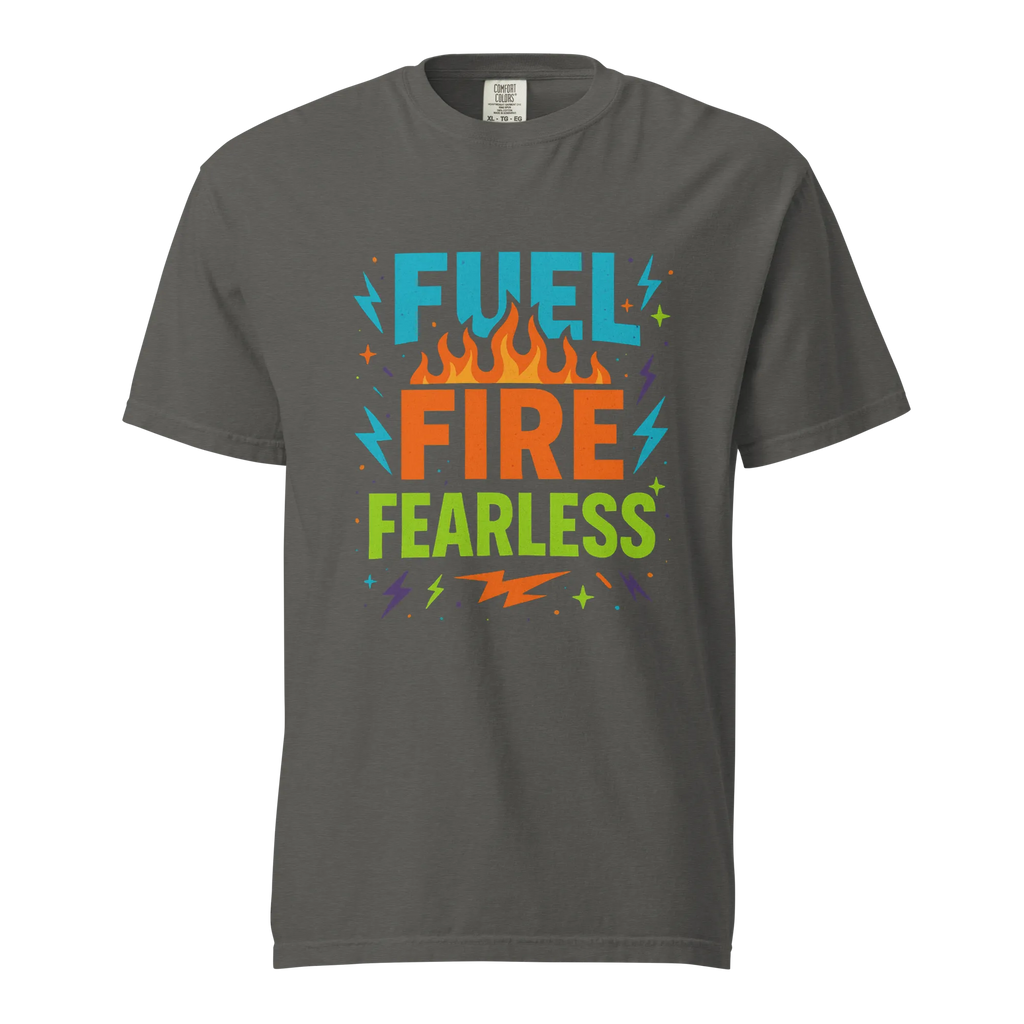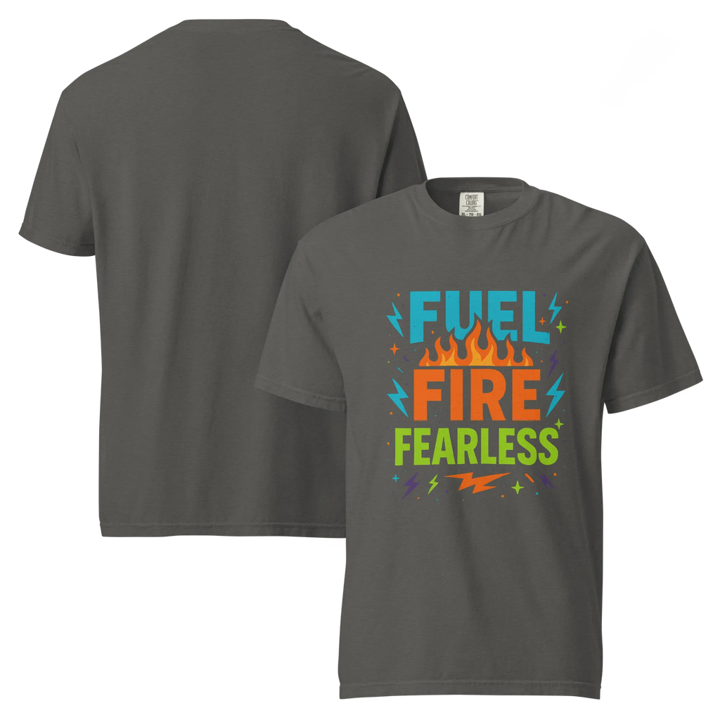 Unleash your inner blaze with the FUEL • FIRE • FEARLESS tee—a high-impact fusion of bold typography and fiery visuals built for those who face every challenge head-on. This shirt isn’t just worn—it’s ignited.