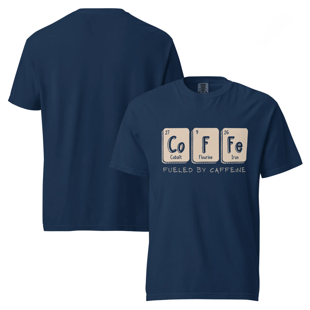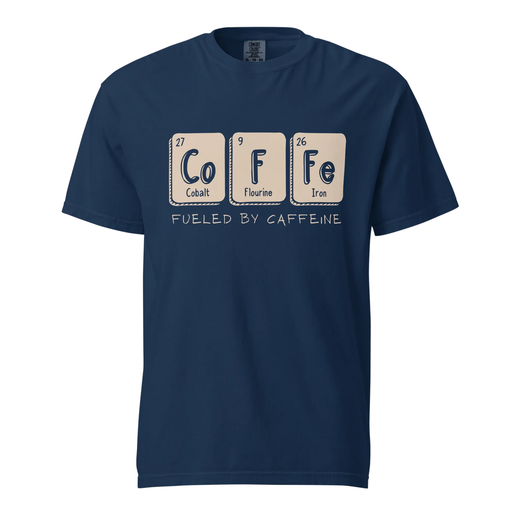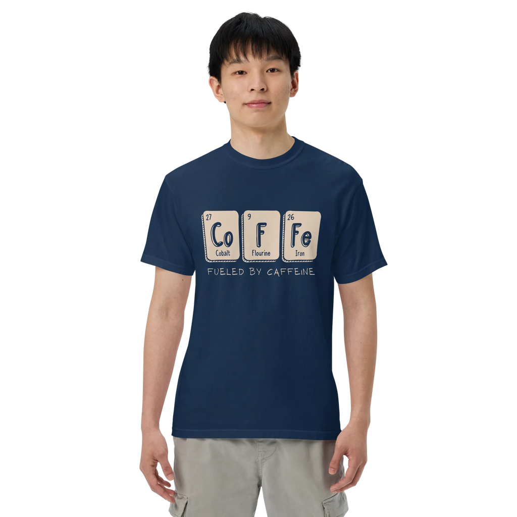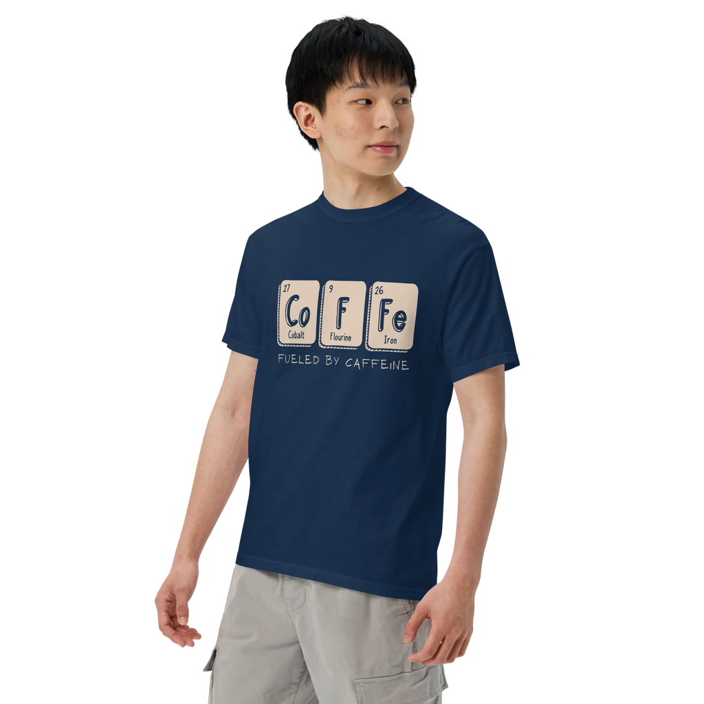 The Fueled by Caffeine - Men's Coffee Graphic T-Shirt combines refined comfort with lasting quality. Crafted from 100% ring-spun cotton, this garment-dyed, pre-shrunk tee offers a luxuriously soft feel and a structured, relaxed fit. Precision stitching and premium finishing offer long-lasting wear, while the clever, chemistry-inspired graphic adds character and charm.