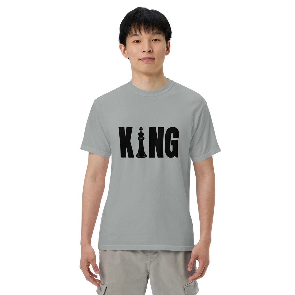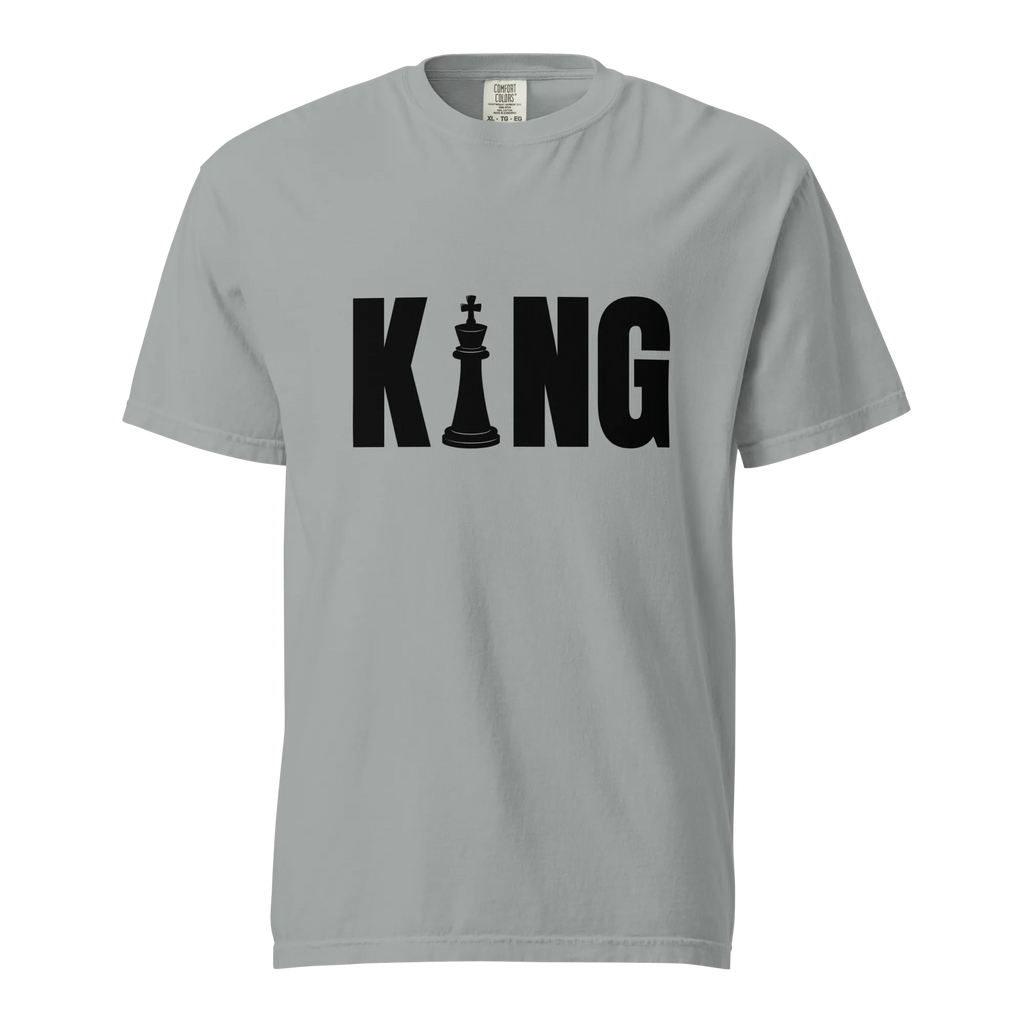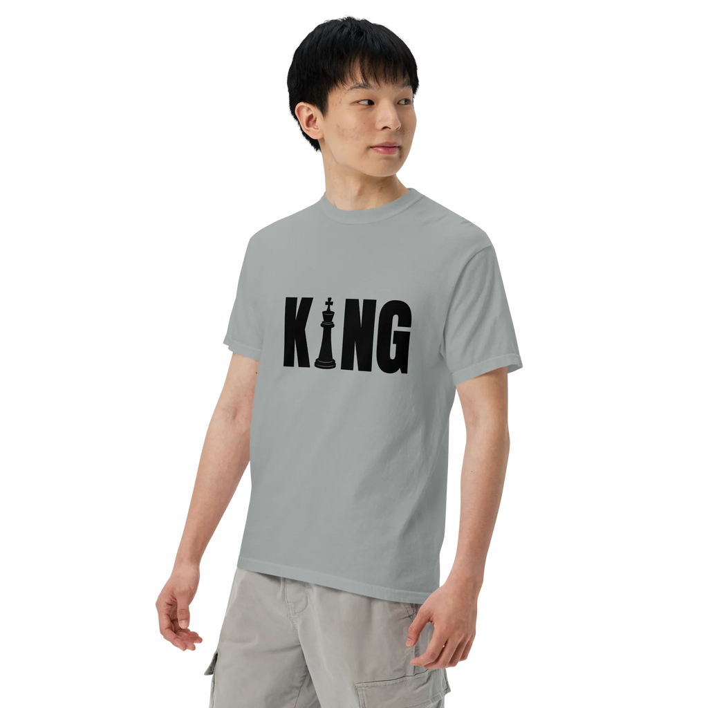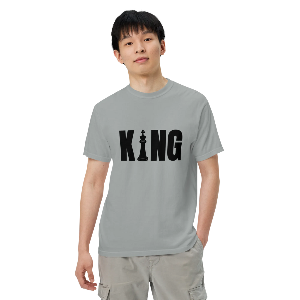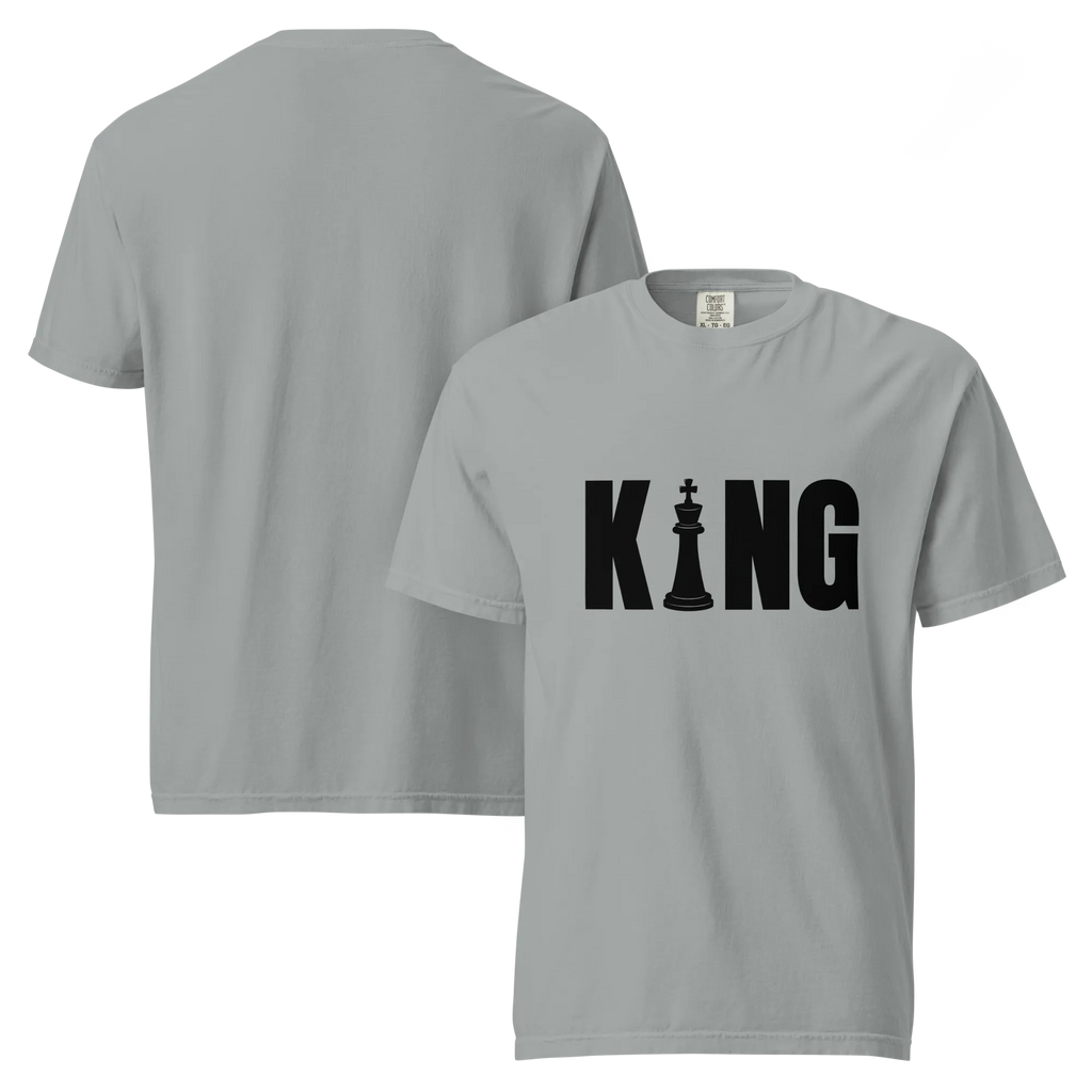 Own your look with bold simplicity. The Men’s “KING” T-Shirt combines confident typography with premium craftsmanship. Made from heavyweight, ring-spun cotton and garment-dyed for a rich tone and soft feel, it’s designed to deliver comfort, style, and presence—every time you wear it.