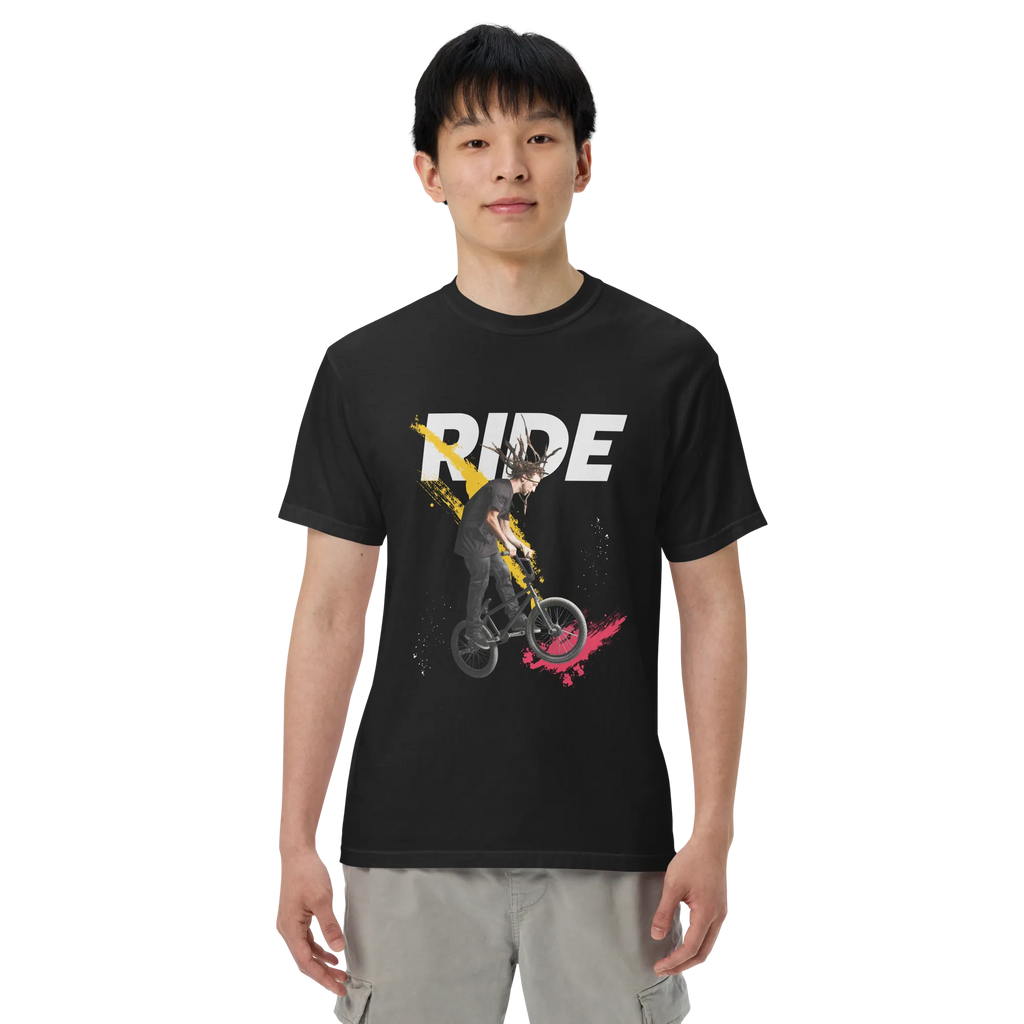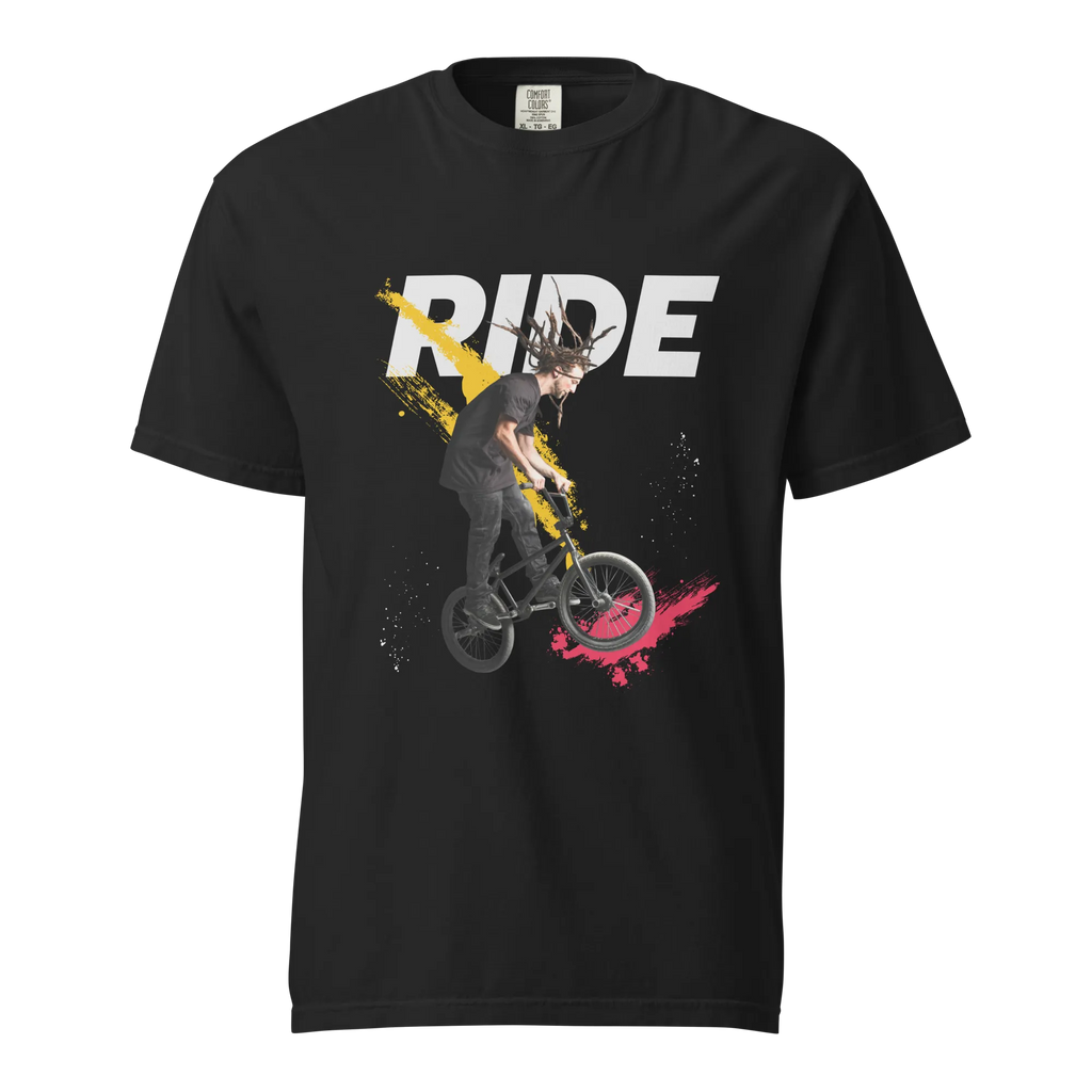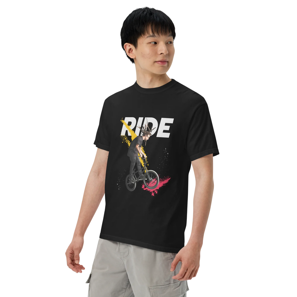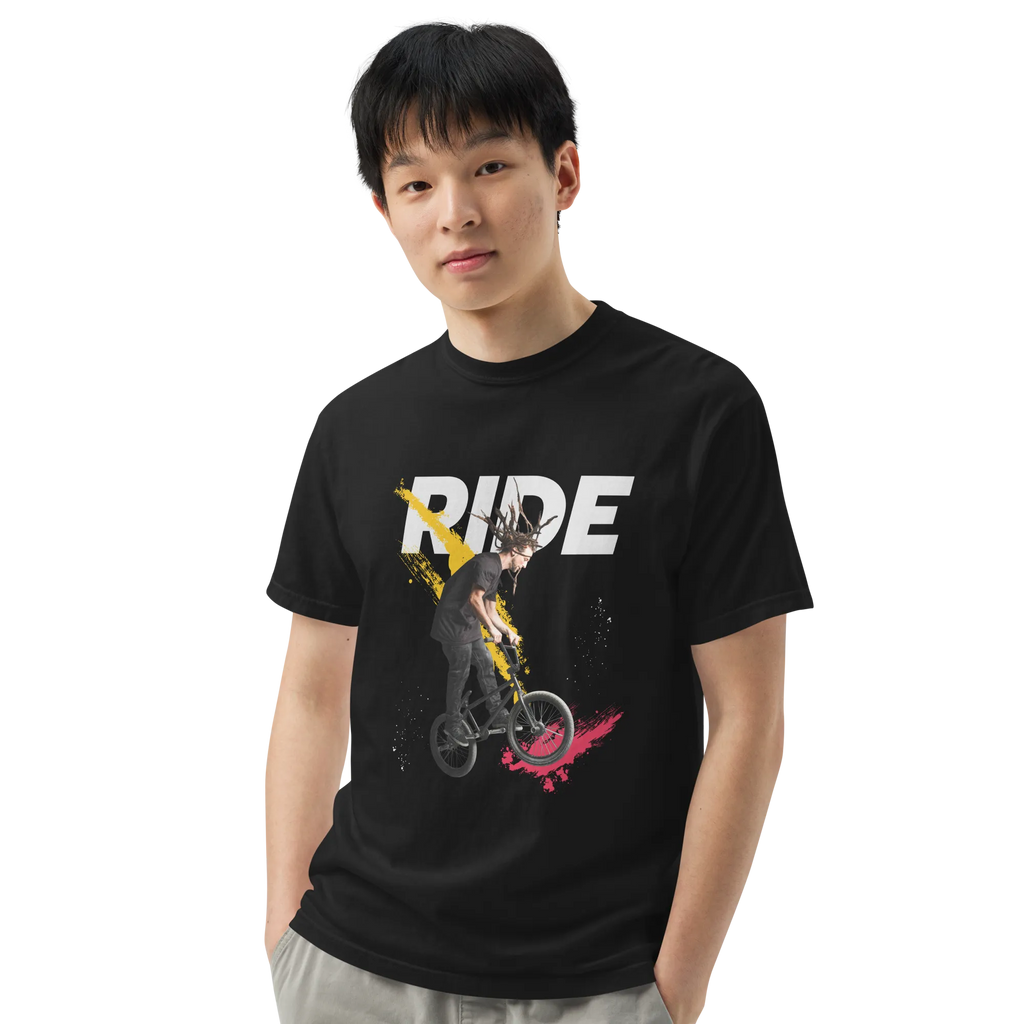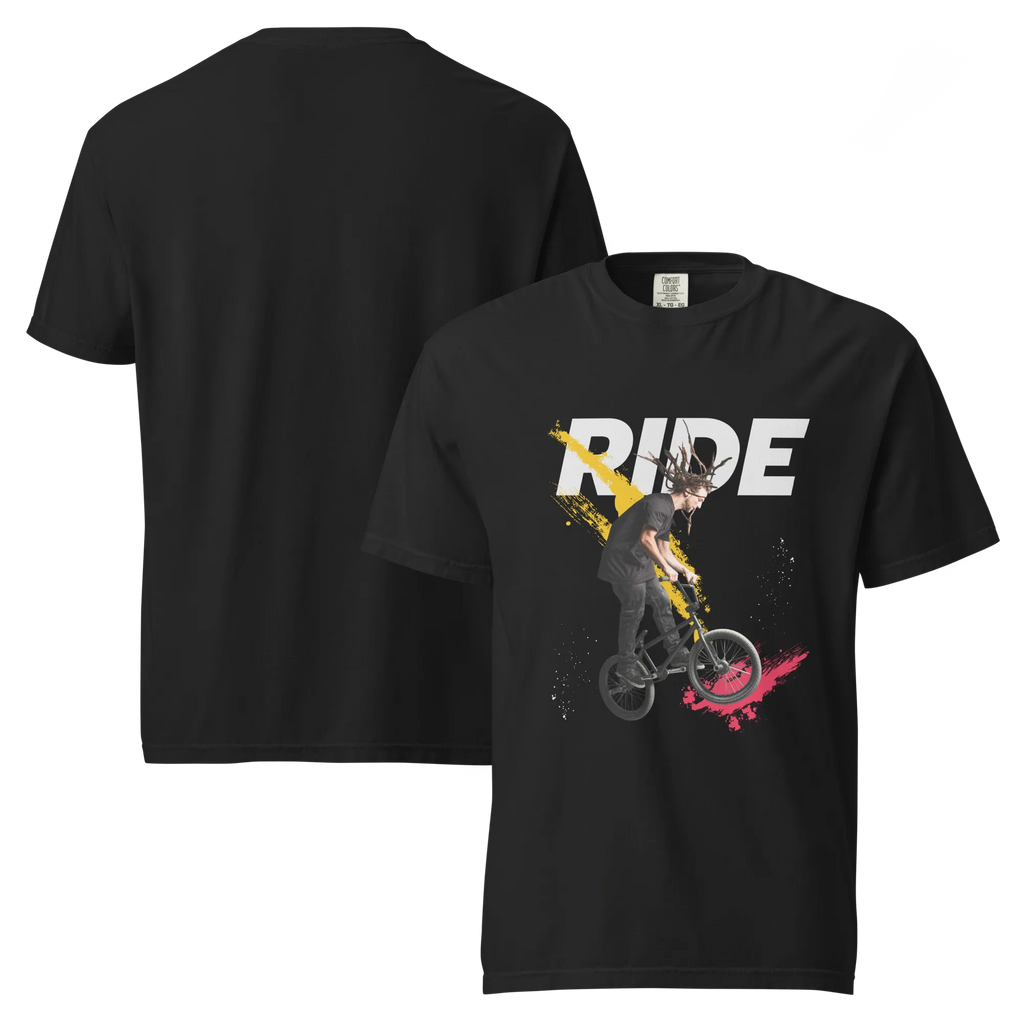 Built for Speed. Made for Comfort. For those who move with purpose, the RIDE tee captures the thrill of the road and the freedom of the ride. Featuring bold, minimalist typography and a sleek racing cycle graphic, this t-shirt fuses athletic inspiration with everyday style. Crafted from ultra-soft, garment-dyed cotton, it offers lasting comfort with a sharp, structured silhouette.