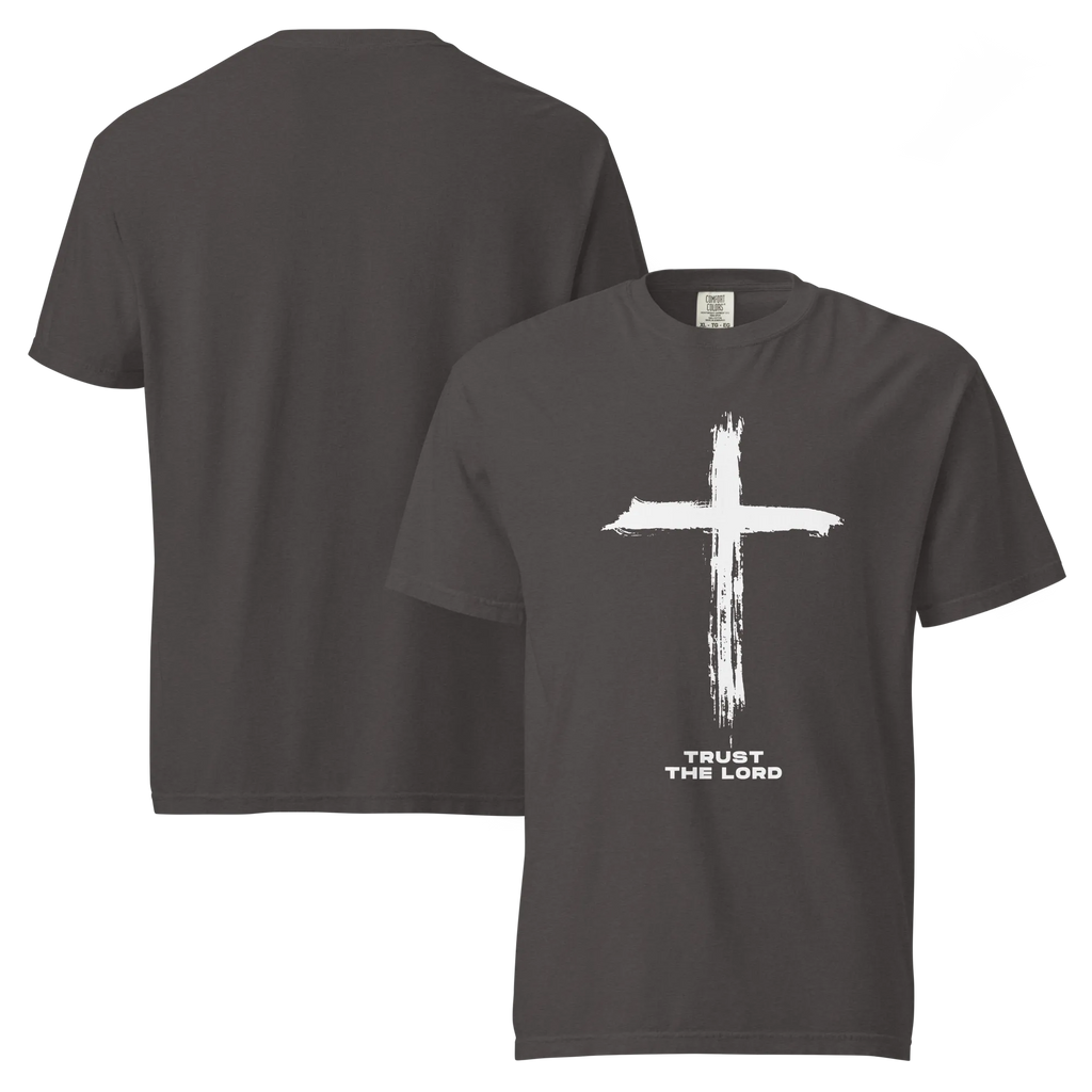 Faith. Strength. Purpose. Rooted in faith and built with intention, the Trust the Lord t-shirt is a bold yet timeless expression of spiritual confidence. Featuring a powerful Christian symbol and strong typographic design, this tee blends everyday wearability with a message that speaks from the heart. Crafted from premium garment-dyed cotton, it offers a structured fit, a soft hand feel, and a design that wears with quiet strength.